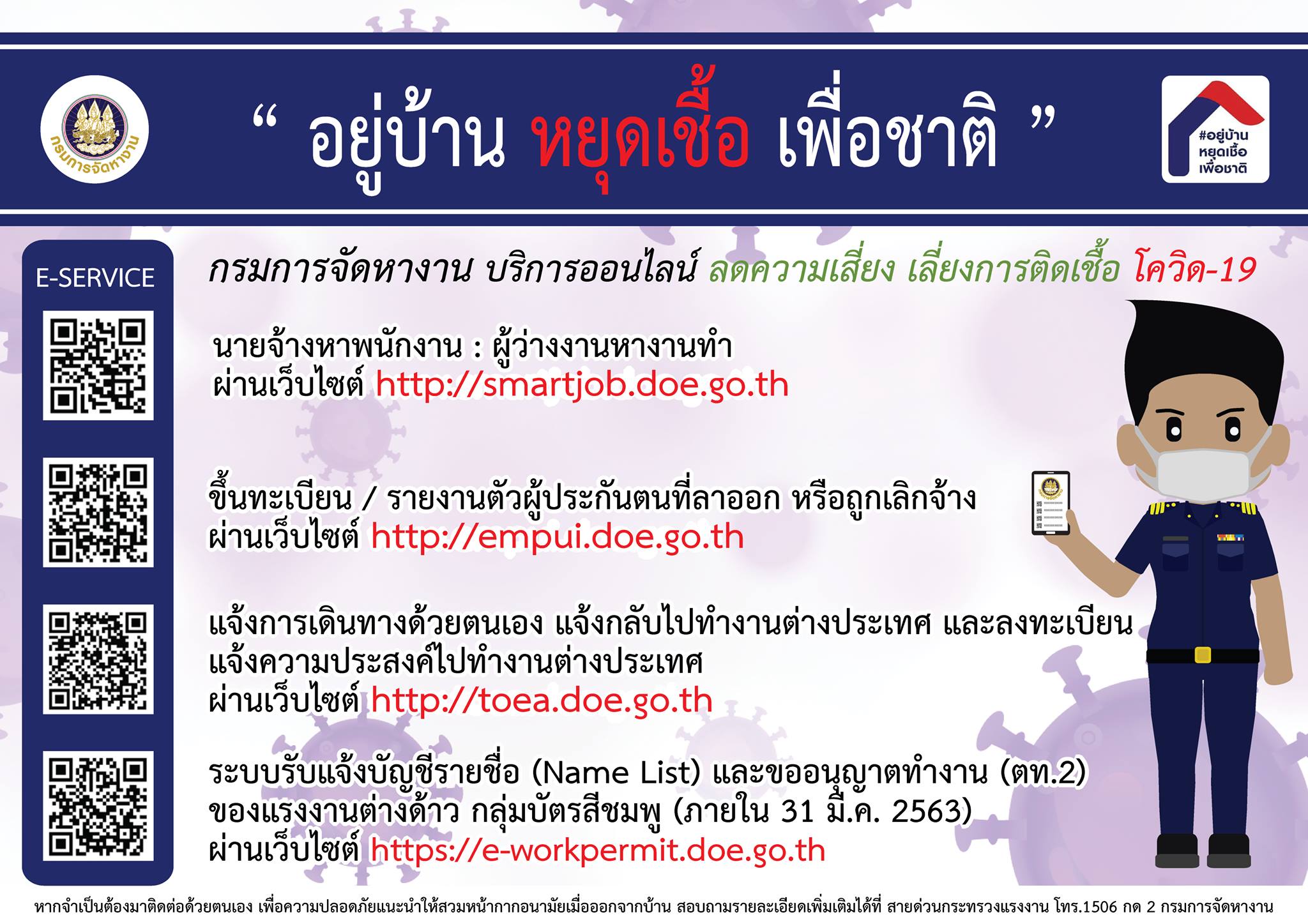 อยู่บ้าน หยุดเชื้อ เพื่อชาติ แล้วมองหาโอกาส ในวิกฤต ภาพอนาคต 30 วัน หากคนไทยไม่อยู่บ้าน หยุดเชื้อ เพื่อชาติ วันที่ 24 มี.ค. แจงเปิดให้ประชาชนที่จะเดินทางข้ามเขต กรอกข้อมูลผ่านเว็บ #หยุดเชื้อเพื่อชาติ เพื่อรับคิวอาร์โค้ด แสดงต่อ. ศ.นพ.ยง หวั่นหากมีผู้ติดเชื้อโควิดมาก อาจเกิดสายพันธุ์ใหม่ในประเทศ แนะคนเดินทางมาจากต่างประเทศต้องกักตัว 14 วัน และมีมาตรการในการตรวจถึง 2. ผอ.ศปก.ศบค. แจง ปชช.เดินทางข้ามจังหวัดเข้าเว็บ หยุดเชื้อเพื่อชาติ กรอกแบบฟอร์ม แจ้ง จนท.ด่านตรวจ เปิดใช้เย็นนี้